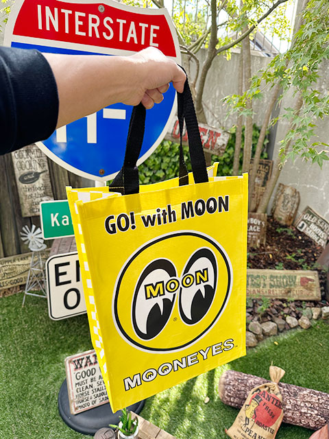 そこで、ムーンアイズがレジャーシート素材で簡易なエコバッグを手がけてくれました。