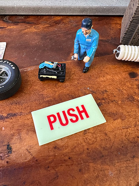 この手のサインはアメリカではいっぱい見かけるんですが、この蓄光タイプは中でも珍しいヤツなんです。