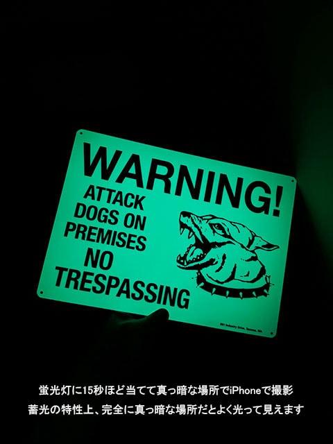 アメリカの蓄光警告サイン (猛犬注意!立ち入り禁止)