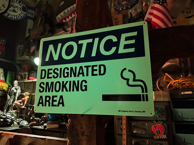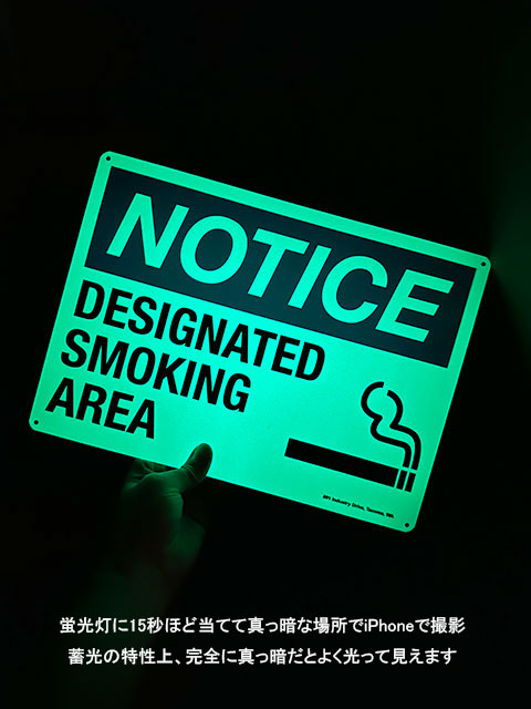 アメリカの蓄光警告サイン (喫煙場所/スモーキングエリア/ブルー)