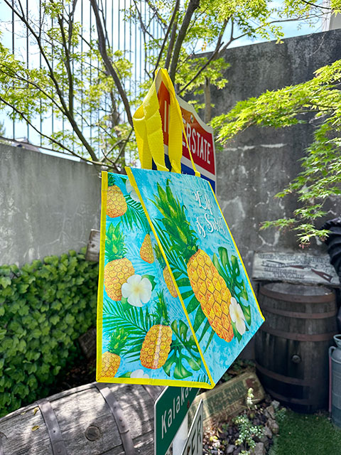 そんな中で見つけてきたのが、ハワイを代表するフルーツ「パイナップル」が描かれたエコバッグ!