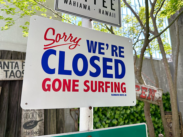 WE'RE CLOSED」を、ハワイアン風にアレンジしたユニークなヤツがこちら!