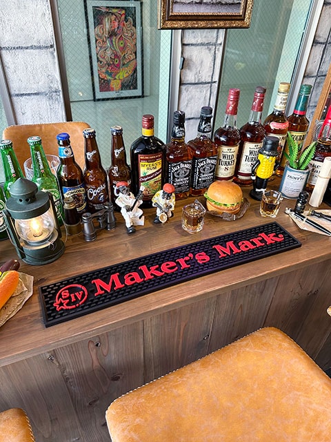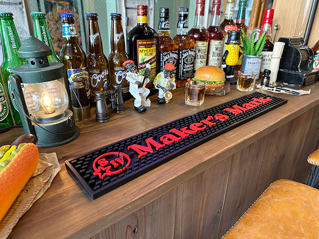このバーマットをテーブルや木箱に敷けば、そこが粋なバーに変身ってヤツです。