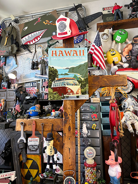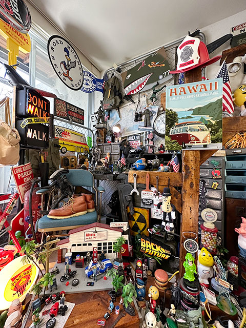 エンボスティンサインなので、壁に飾るほかに、そのまま立て掛けて飾っても絵になるシーンを作ってくれます。
