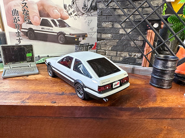 ちゃんと頭文字Dのオフィシャルグッズとして発売された商品なので、車両の再現度はホント完璧だし、「藤原とうふ店」の文字もドアにしっかりと入ってます。