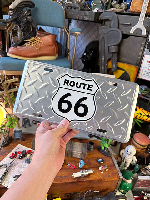 ルート66 ライセンスプレート (シールドシェイプ/白/鉄板模様)
