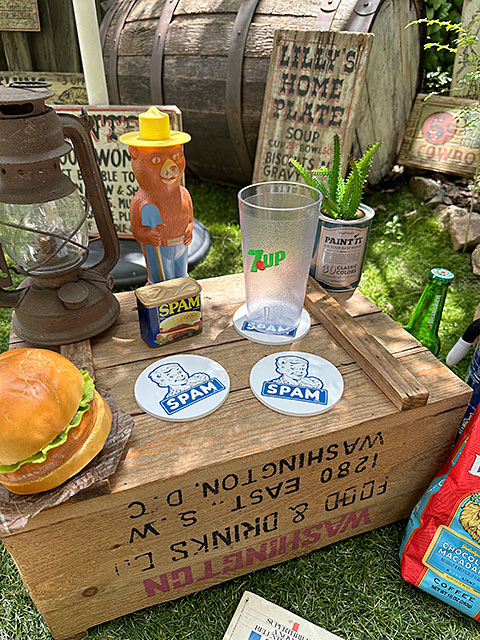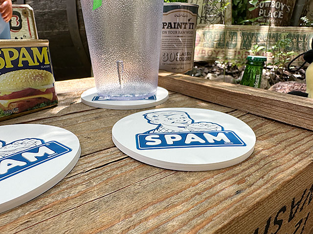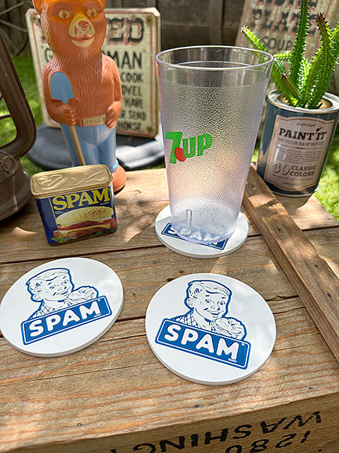 スパムのレトロなロゴマークが入ったラバーコースターです。