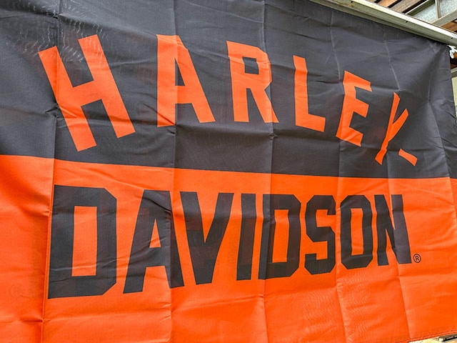この手のフラッグはアメリカだと色んなデザインがリリースされてますが、ハーレーのオフィシャルモノってなかなか見つかりませんでした。