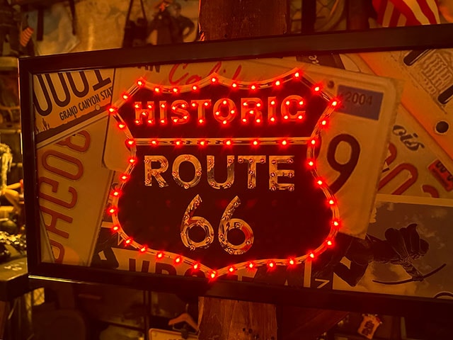 アメリカのシティに行くと見かけるビルボードサインを思わせる・・・・LEDを使ったルート66のLEDドットサインです。