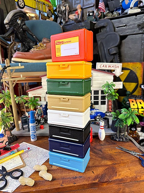 アメリカのガレージや倉庫などで目にする道具入れ「ストレージコンテナ」を、机上サイズにスケールダウンさせたっていう・・・・