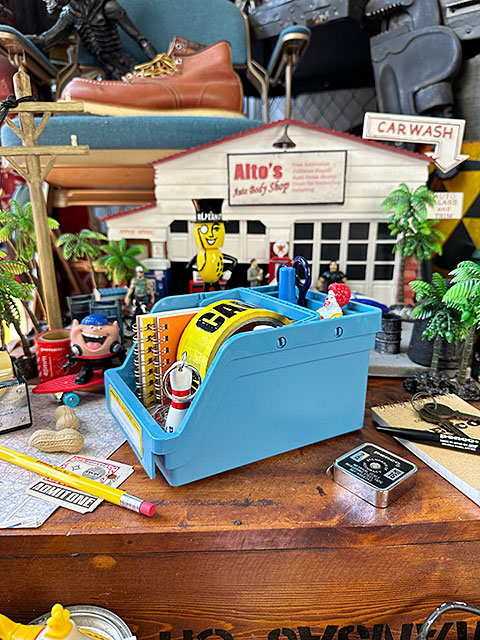 そんな事情をよーく汲んで、雰囲気は海外のパイルアップキャディのまま、サイズはコンパクトで文具や小物を収納するのに最適な大きさにアレンジしてくれたってヤツなんです。