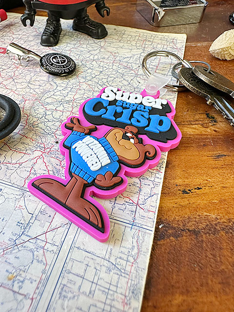 ゼネラルミルズが発売してたシリアル「シューガークリスプ」のマスコットキャラ、シュガーベアーのラバーキーホルダーです。