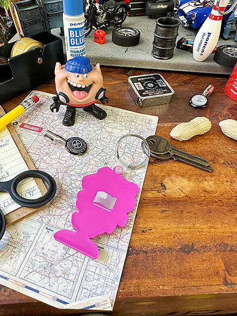 ノベルティとかでもらえそうなラバータイプのキーホルダーで、「メインのカギとは別に持っておきたいようなカギ」に目印として付けると可愛いし、これなら目立ってキーをなくさないから便利!