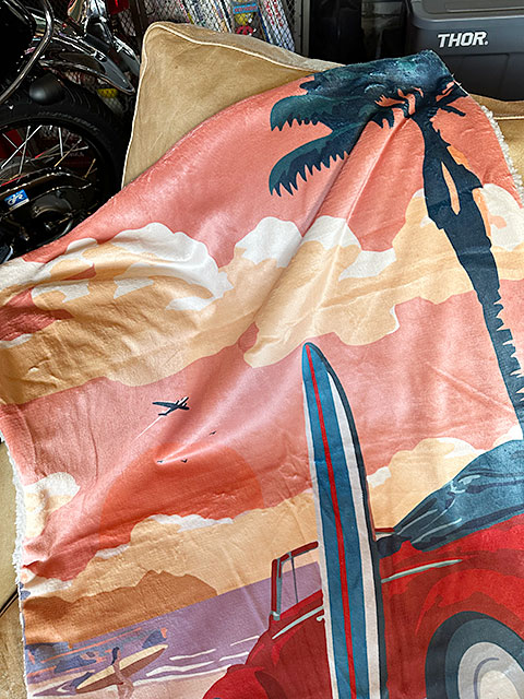 飛行機で旅行をするのがまだ夢の時代った頃のトラベルポスターをまるごとデザインにしたオシャレなフリースブランケットです。