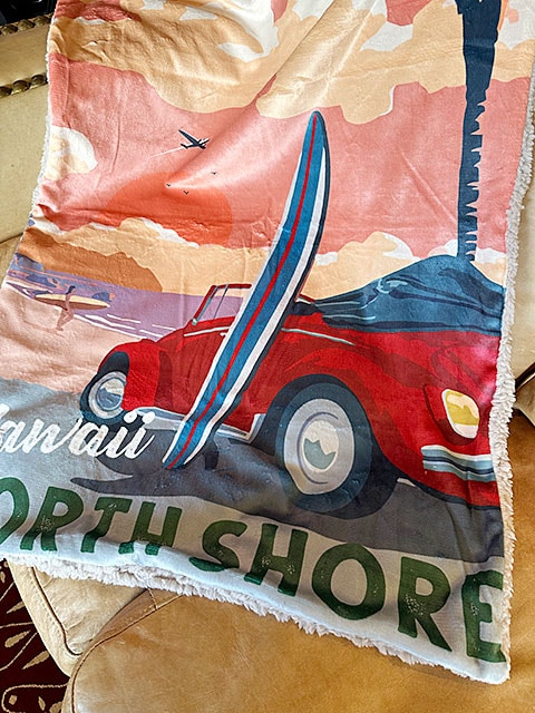 ハワイアン トラベルポスター フリースブランケット 70cm×100cm (ノースショア)