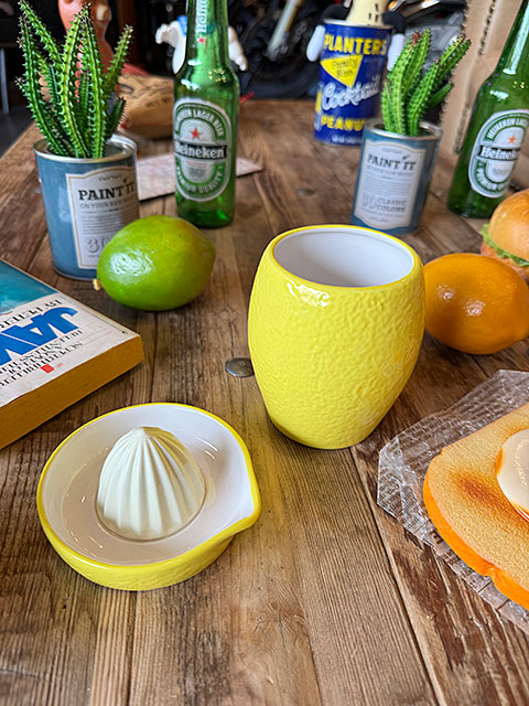 レモン型のタンブラーは、フタをひっくり返すと「絞り器」になってるという気の利きよう!