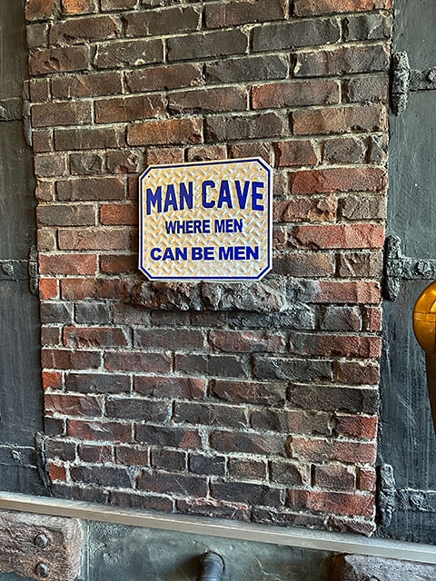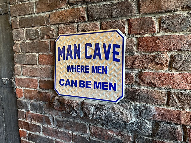 「マンケイブ=男の隠れ家」を意味する鉄板風サインです。