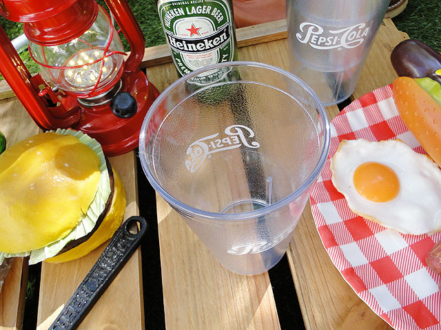 人が大勢集まる時って意外と紙コップとかで済ませちゃうでしょ!うちらはアメリカ人なんだから、そんなところから楽しんじゃわなきゃ!同じドリンクでも昔のペプシのレトロなロゴが入ったコップだと、シーンの絵柄がステキじゃないですか!