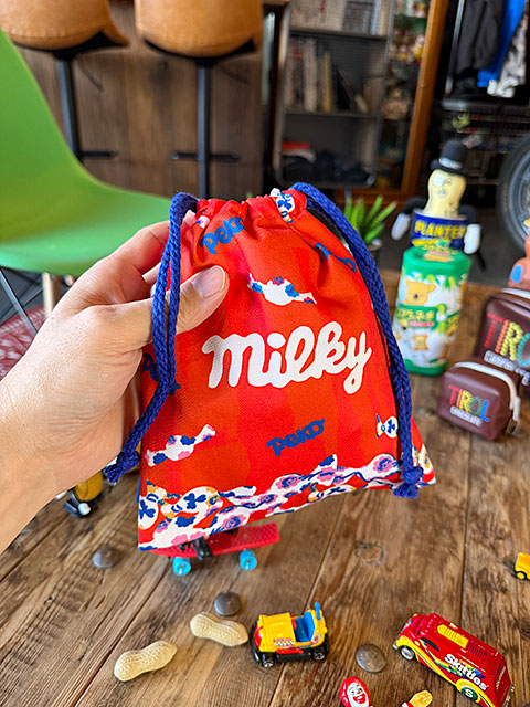 駄菓子屋シリーズ お菓子のキンチャク袋 (ミルキー) 不二家 オフィシャルグッズ 巾着袋 昭和レトロ