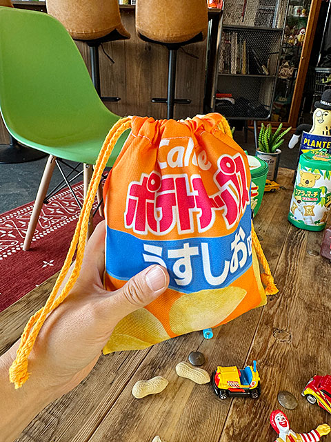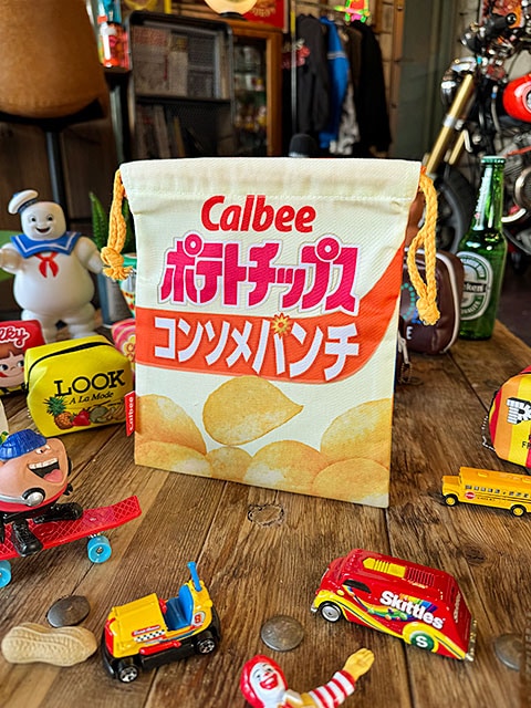駄菓子屋シリーズ お菓子のキンチャク袋 (ポテトチップス) カルビー オフィシャルグッズ 巾着袋 昭和レトロ