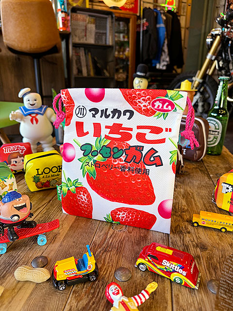 駄菓子屋シリーズ お菓子のキンチャク袋 (マルカワ フーセンガム) オフィシャルグッズ 巾着袋 昭和レトロ