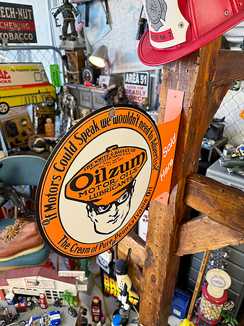 オイルザム サイド看板 両面プリント フランジメタルサイン Oilzum オイルズム