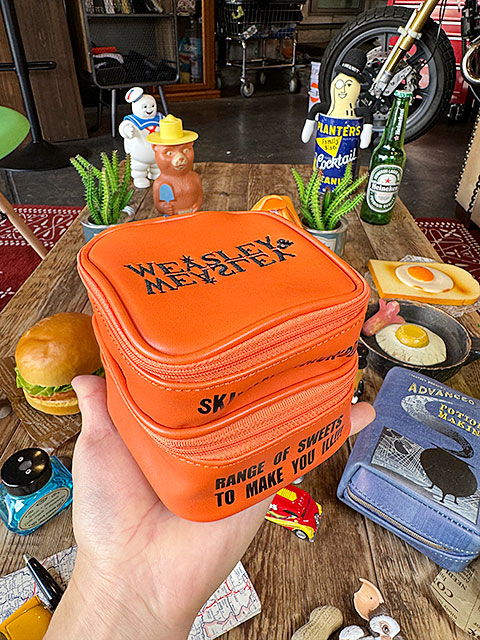 「ずる休みスナックボックス」をモチーフにしたユニークなファスナーポーチです。