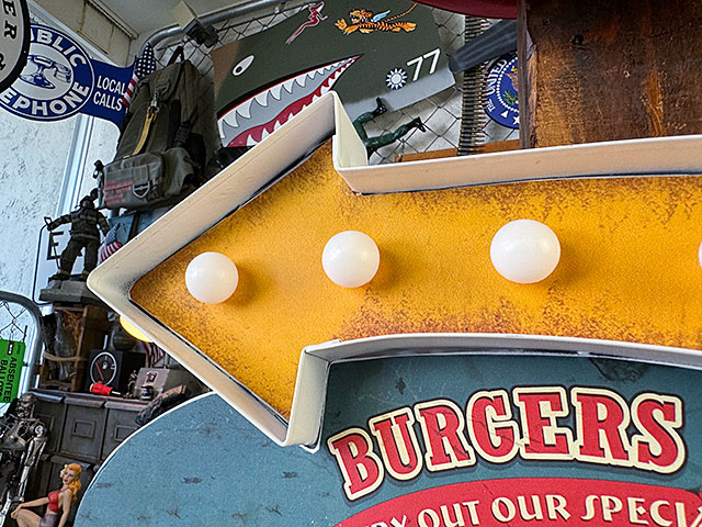 アメリカを車で走ってると目に飛び込んで来る、ロードサインをモチーフにした・・・・ハンバーガーショップのLEDティンサインです。