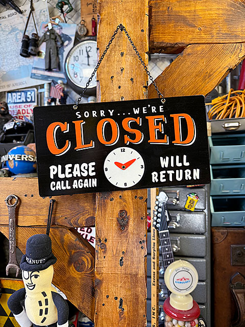 アメリカの町中にあるお店で、よく目にするスタイルの、「オープン&クローズ」のハンギングサインを、スチール看板で再現したってヤツ!