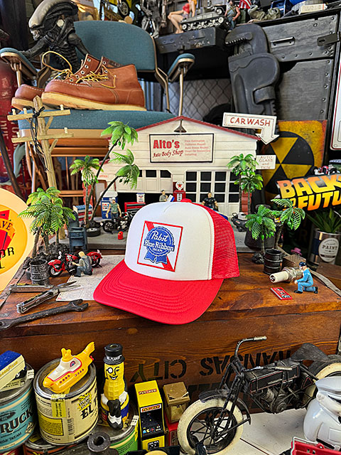 パブスト ブルーリボン ビアー メッシュキャップ 帽子色=ホワイト×レッド