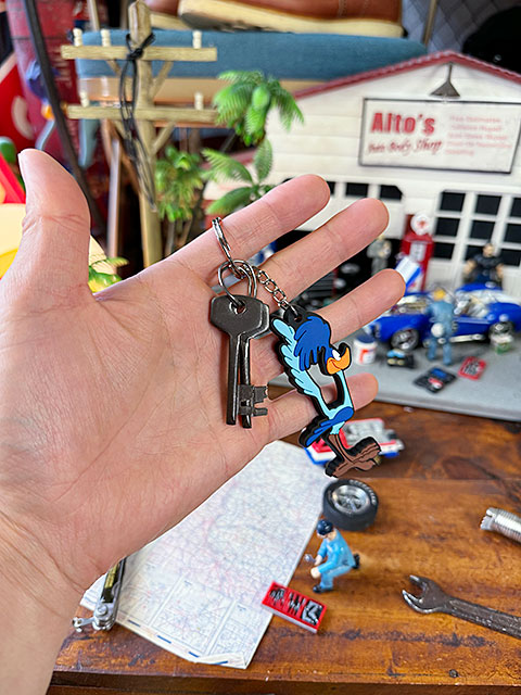 所さんの影響ですっかりとアメリカ雑貨好きの間で市民権を得たキャラクター、ロードランナーがラバーキーホルダーで登場です。