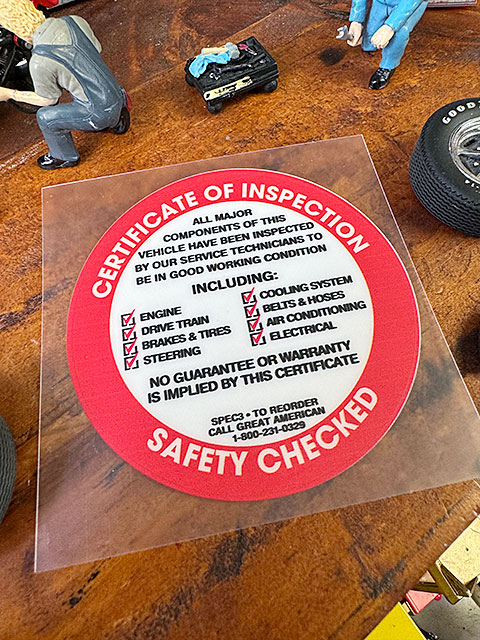 アメリカでクルマの点検&整備を済ませると、「作業完了の証し」として窓ガラスに貼ってもらえる、点検整備チェックステッカー(インスペクション・ステッカー)です。
