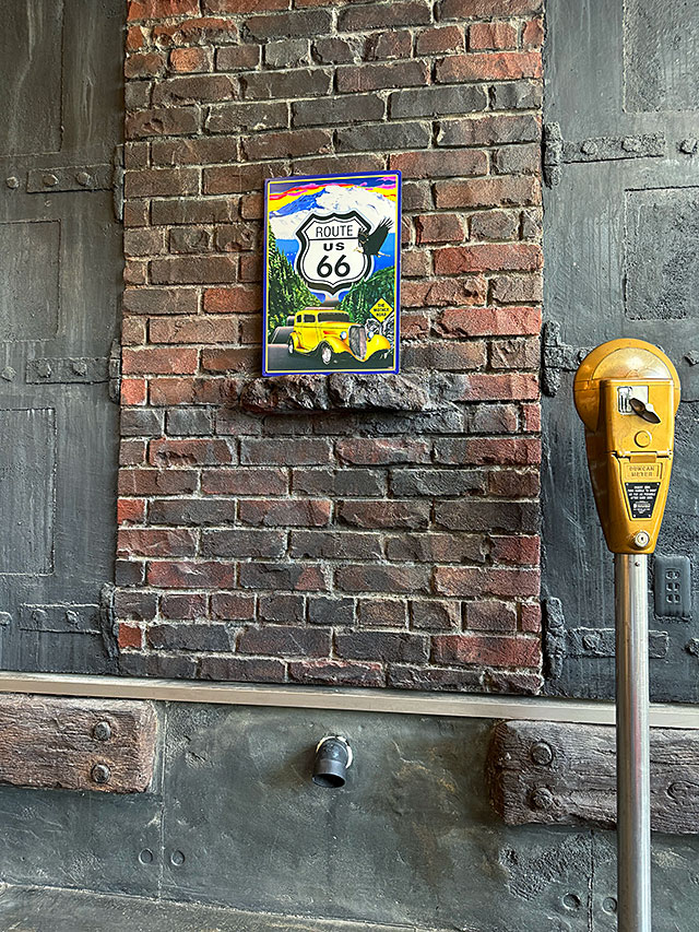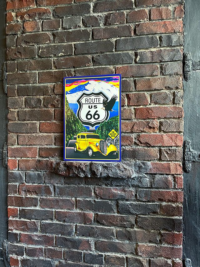1930年代のクラシカルな車が走る道路こそ看板に大きく描かれたルート66! 大自然の中をアップダウンする直線道路はまさに私たちの想像するアメリカそのものです。 主役の車の美しいラインを見てさらにうっとり! タイヤハウスから流れるように伸びるサイドスカート…そして後ろを見渡せば、巨大なルート66のロードサイン見えているという演出がされています。 クラシカルな美しさを大好きな車とルート66で味わえる贅沢な看板です。 サイズ:縦42cm×横30cm(約) MADE IN U.S.A.