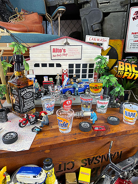 アメリカ人の旅行のお土産として昔から人気のショットグラスで、モーターガレージ系のデザインばかりをコレクトしたシリーズがこちら!