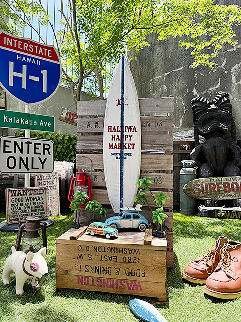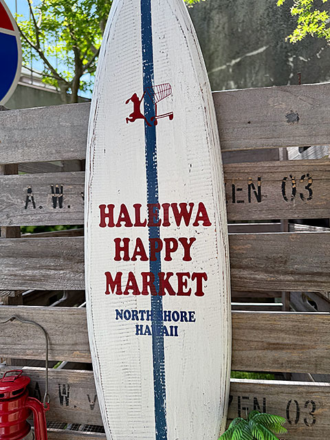 ハレイワ ハッピーマーケット サーフボードサイン 木製看板