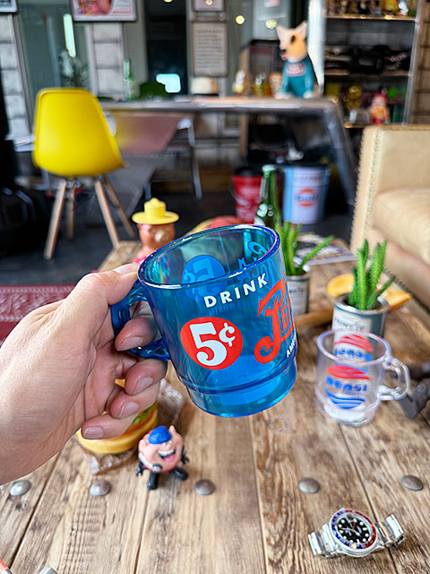 コカ・コーラの永遠のライバル、ペプシのロゴがデザインされたスタッキングマグです。