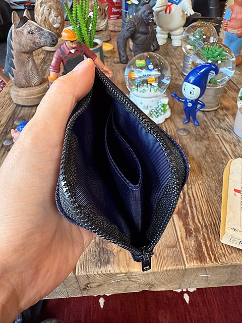 小さいけれど、中を開けるとちゃんと仕切りがあって、小銭とお札、そしてクレジットカード類を分けて収納できるようになってるところは、さすがペンコって感じ!