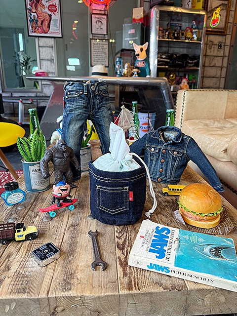 聞くと、長年大手ジーンズメーカーのウォッシュ加工を専門に手掛けてきた岡山の会社だそうで、今回はその技術力を活かして、遊びゴコロある自社ブランドを立ち上げたみたいなの!