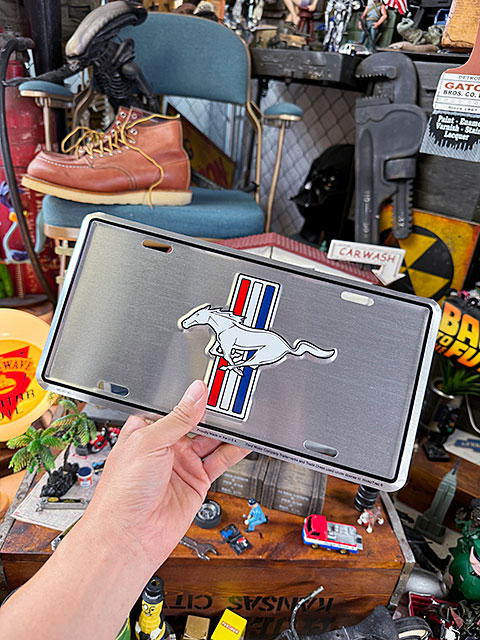 マスタングの伝統のエンブレムを、クラシックなタッチでデザインしたオフィシャル・ライセンスプレートです。