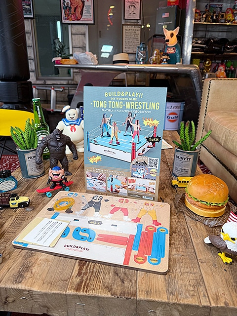 ウッドボードにプリントされたレスラーやリングのパーツを切り離し、コツコツと組み立てていくと、完成するのは懐かしのオモチャ!