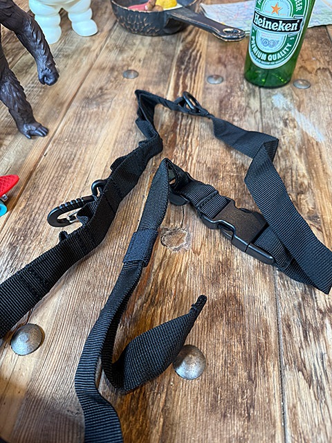 ストラップ部分には「ウェビング」が付いてるので、そこへカラビナでキーホルダーやイヤホンケース引っかけたりするカスタマイズも可能!
