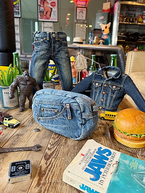 細部まで本物そっくりにこだわったジーンズ型ポーチです。