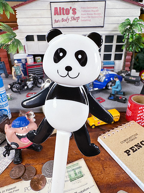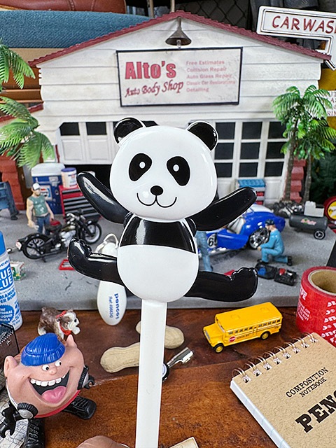 ペン先に連動して、手足がテクテクと動く、可愛すぎるパンダ付きのボールペンです。