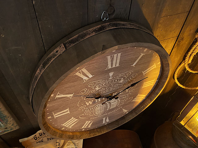 レンガ作りの倉庫に山積みにされたウイスキー樽の風景・・・・そんなシーンを連想させてくれるバレル(樽)型のウォールクロックです。