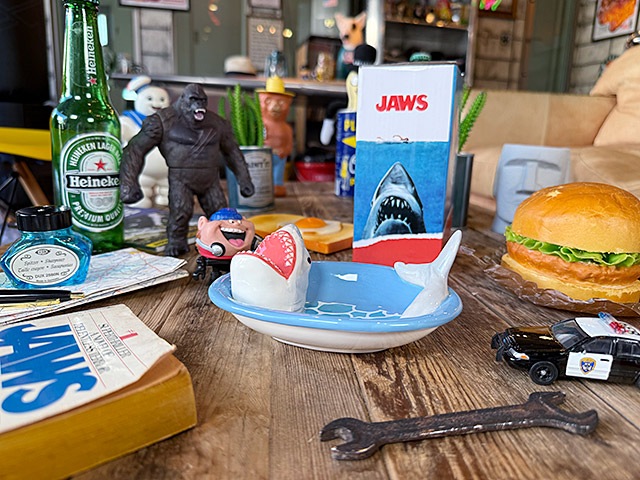 突如襲いかかる人食いザメ、ジョーズをテーマにした、面白プレートです。