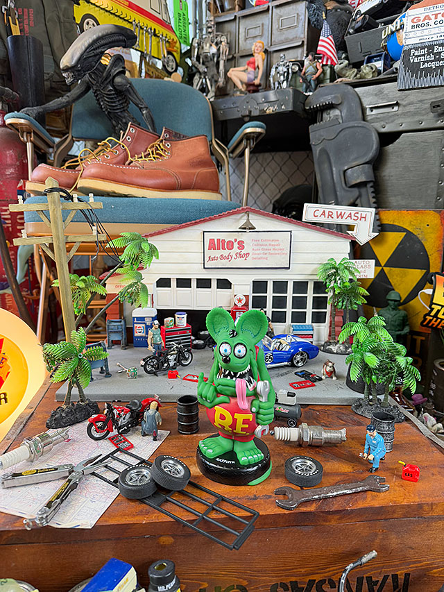 ホットロッドカルチャーを黎明期から牽引してきたキャラなので、アメ車のミニカーと一緒に飾るのも、思い切りハマリますよ!