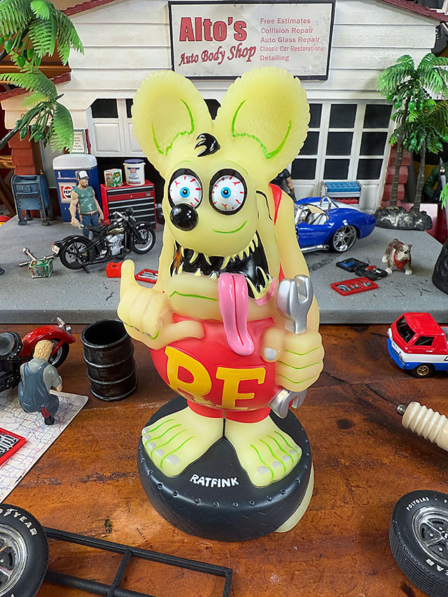 ホットロッドカルチャーを黎明期から牽引してきたキャラなので、アメ車のミニカーと一緒に飾るのも、思い切りハマリますよ!