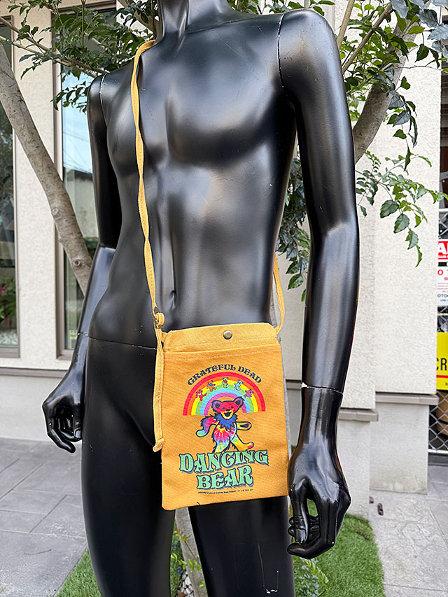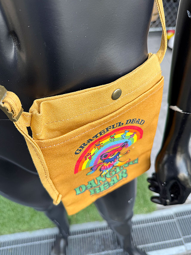 小ぶりで斜め掛けできるバッグとして今人気のサコッシュで、60年代のヒッピー文化の象徴的アーティスト「グレイトフルデッド」のマスコットキャラとして人気を博した「デッドベアー」シリーズです。