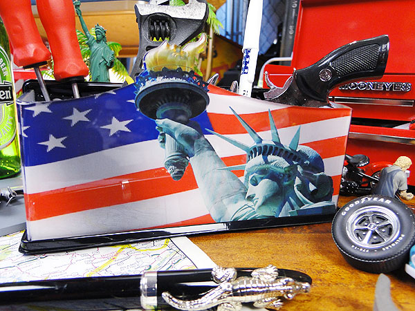 風になびく星条旗をバーンと豪快にデザインしたマグネット式の小物入れです。