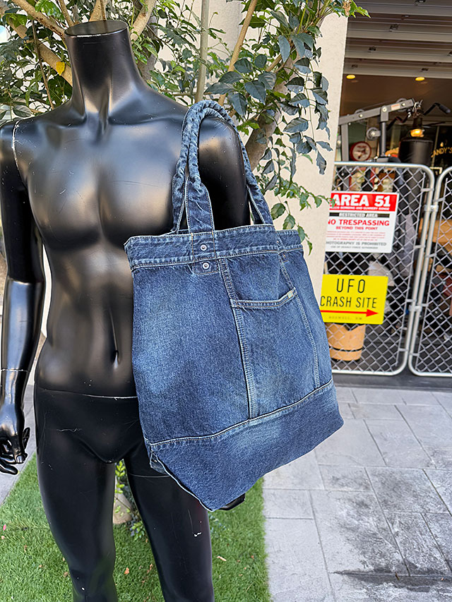 生地から仕立てたバッグが完成したら、今度はお得意のウォッシュ加工を1点1点、丁寧に施していき、最終的にこの魅力的なUSEDデニム風へとなります。